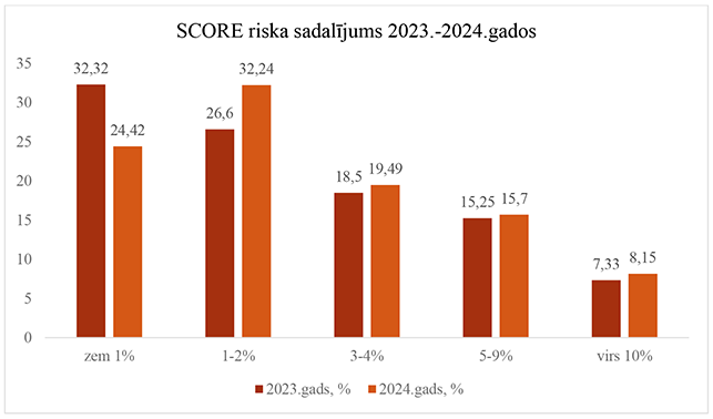 | SCORE | Fatālu kardiovaskulāro notikumu risks tuvāko 10 gadu laikā |