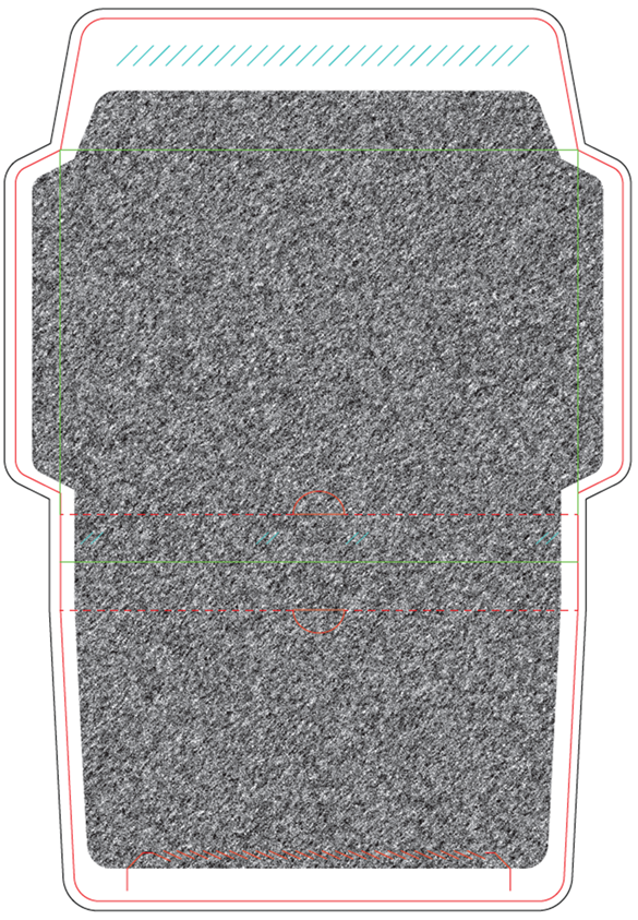 2.2. krāsa: aploksnes priekšpuses apdruka sarkanā krāsā (PANTONE 201C, CMYK: 25/100/77/20, RGB140/8/12 - #8C080C), abās pusēs apakšmala (15mm josla) 20% sarkanā krāsas (PANTONE 201C, CMYK: 25/100/77/20, RGB140/8/12 - #8C080C) rastrā, aploksnes iekšpuses apdruka melna ar pārklājumu, kas nodrošina aploksnes satura konfidencialitāti.