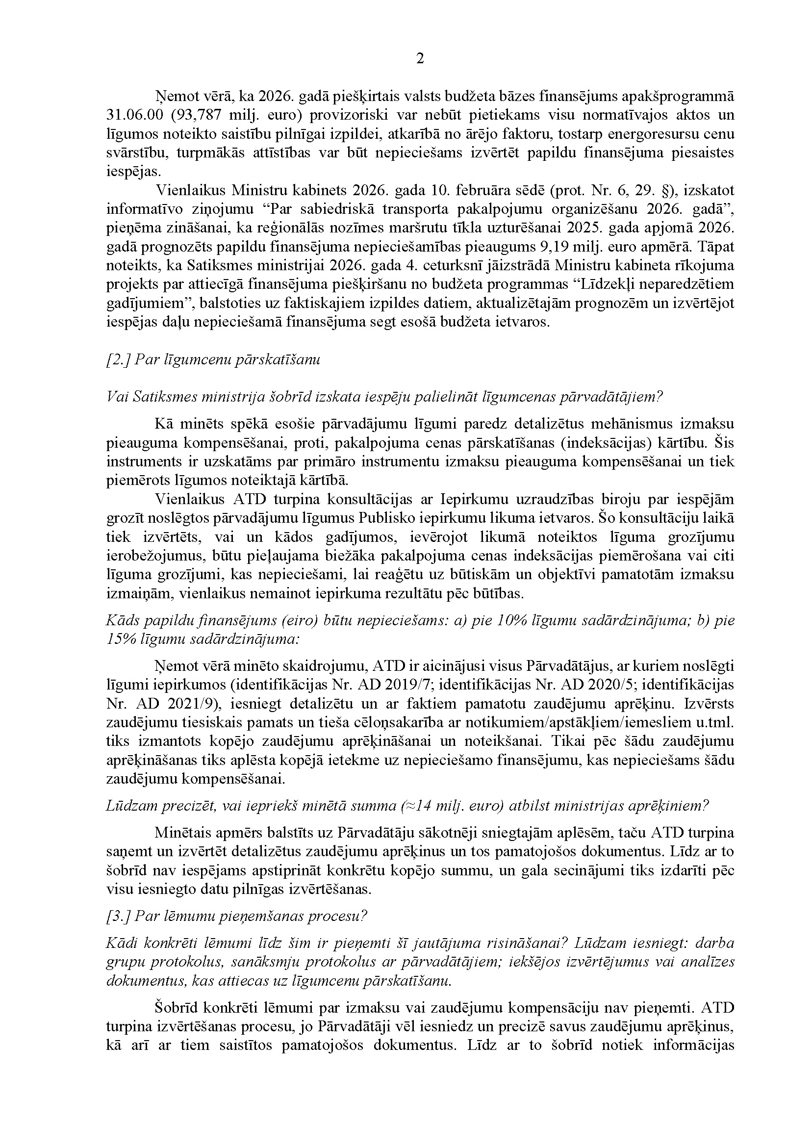 Atļaujiet vēl informēt par atbilžu sniegšanu uz deputātu jautājumiem. Un jautājumu ir daudz.