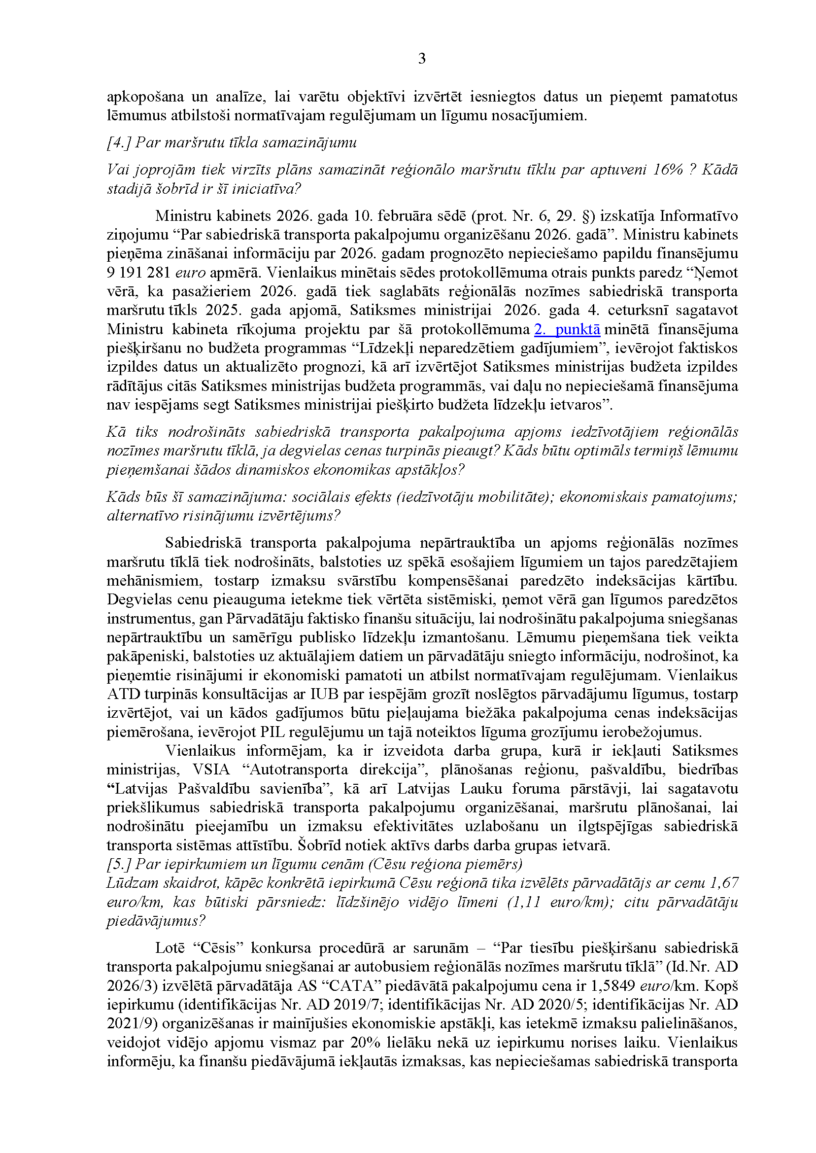 Jautājums tiek nodots ministram atbildes sniegšanai.