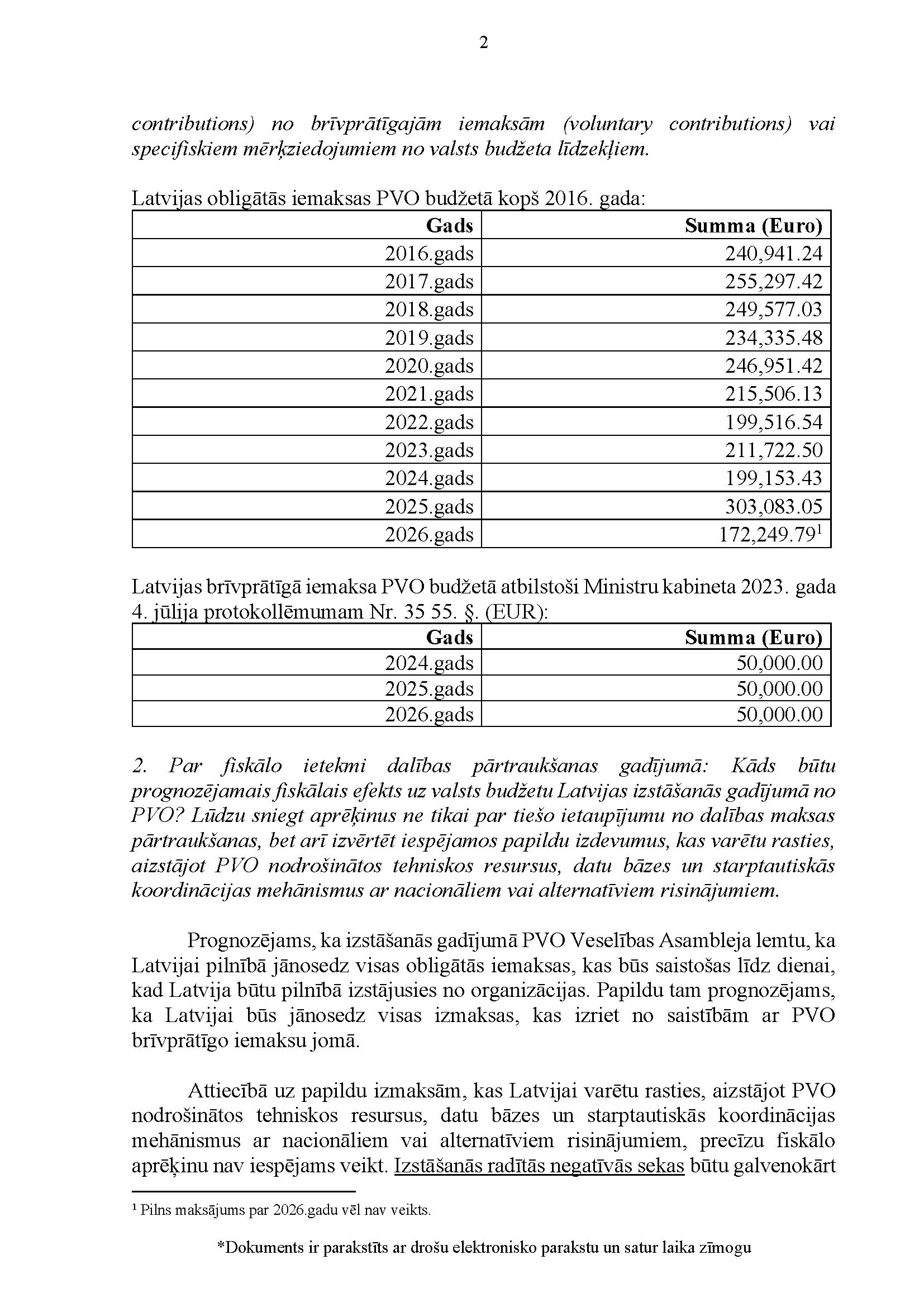 Tā kā kolektīvā iesnieguma prasījums par pensiju 2. līmeņa uzkrājumu brīvprātīgu izņemšanu ir identisks ar prasījumu, kas izteikts iepriekš izskatītajā kolektīvajā iesniegumā, par kuru jūs tikko balsojāt, Latvijas Bankas, Labklājības ministrijas, Finanšu nozares asociācijas un citu institūciju viedokļi par brīvprātīgu izņemšanu ir identiski... attiecībā pret iepriekš izklāstīto un apskatīto kolektīvo iesniegumu. Tāpēc es šos argumentus neatkārtošu. Apskatīšu tikai pārstāvja teikto attiecībā uz papildu aicinājumu, kas ir ietverts šajā kolektīvajā iesniegumā, proti, par valsts sociālo apdrošināšanas iemaksu samazināšanu par 6 procentiem.