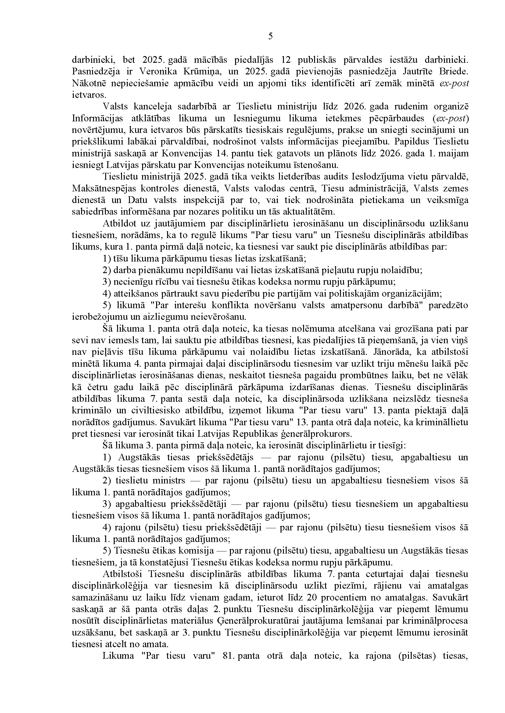 Kolēģi, būsim atbildīgi un būvēsim tiesisku valsti!
