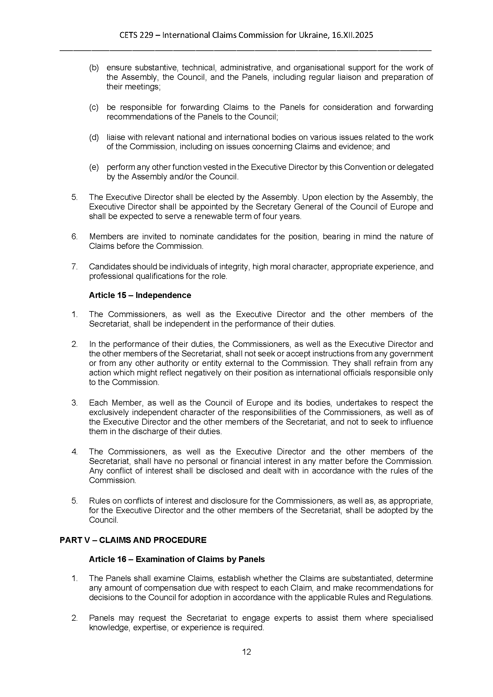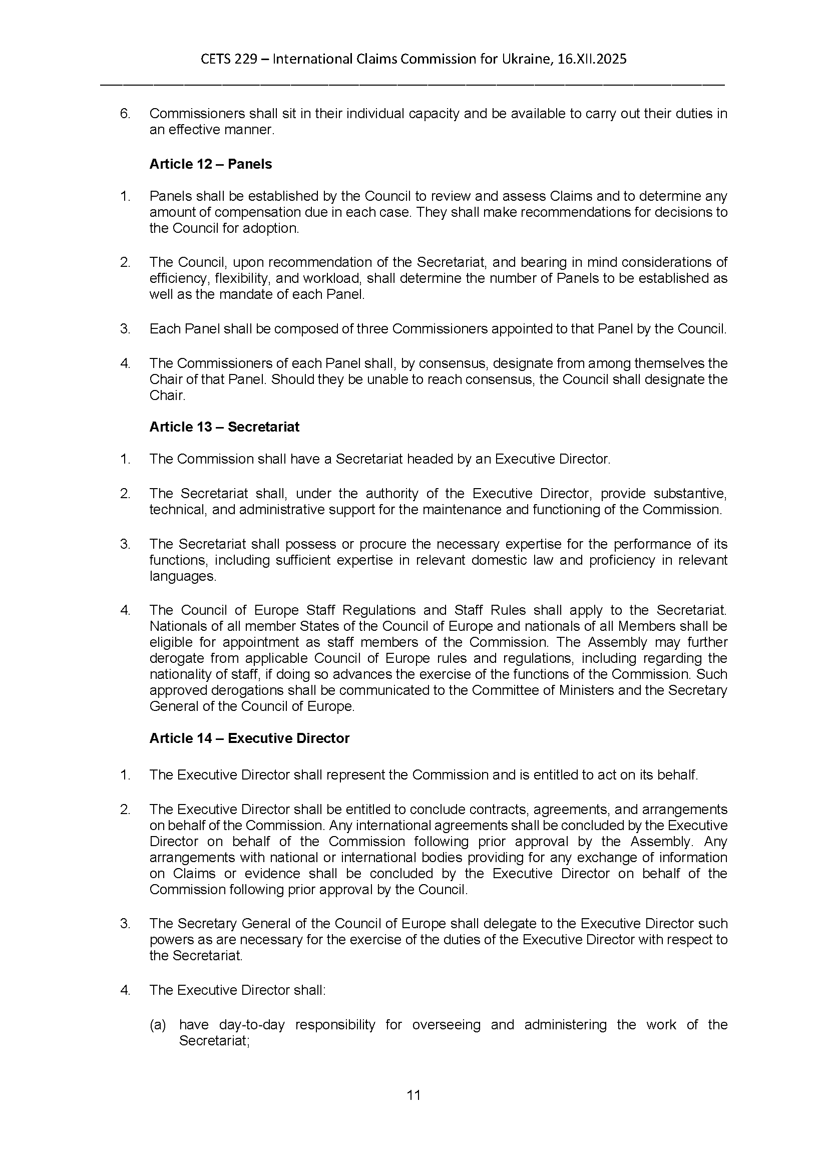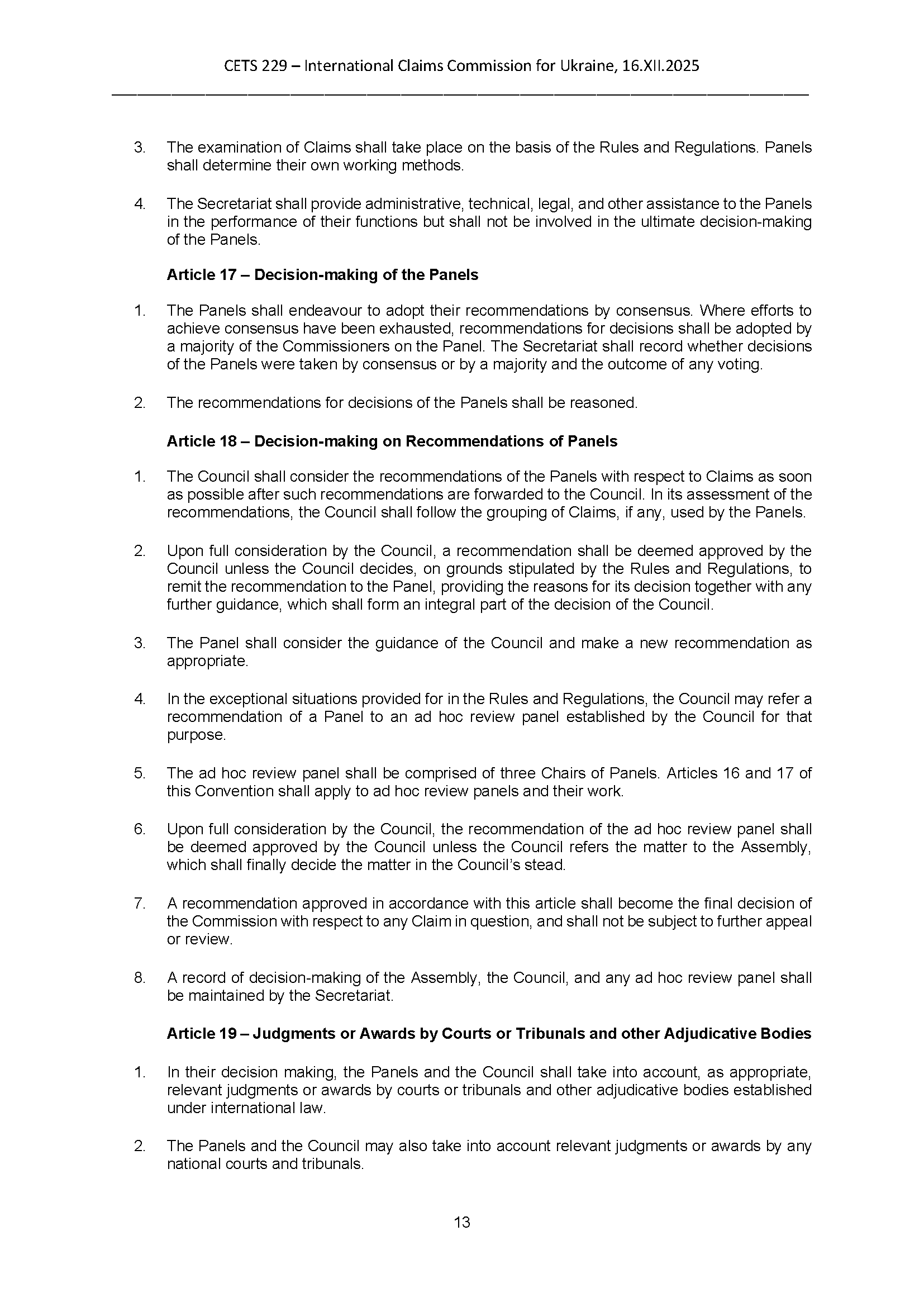 Ar šo Starptautiskā Prasību komisija Ukrainai tiek izveidota kā neatkarīga struktūra Eiropas Padomes iestāžu sistēmā.
