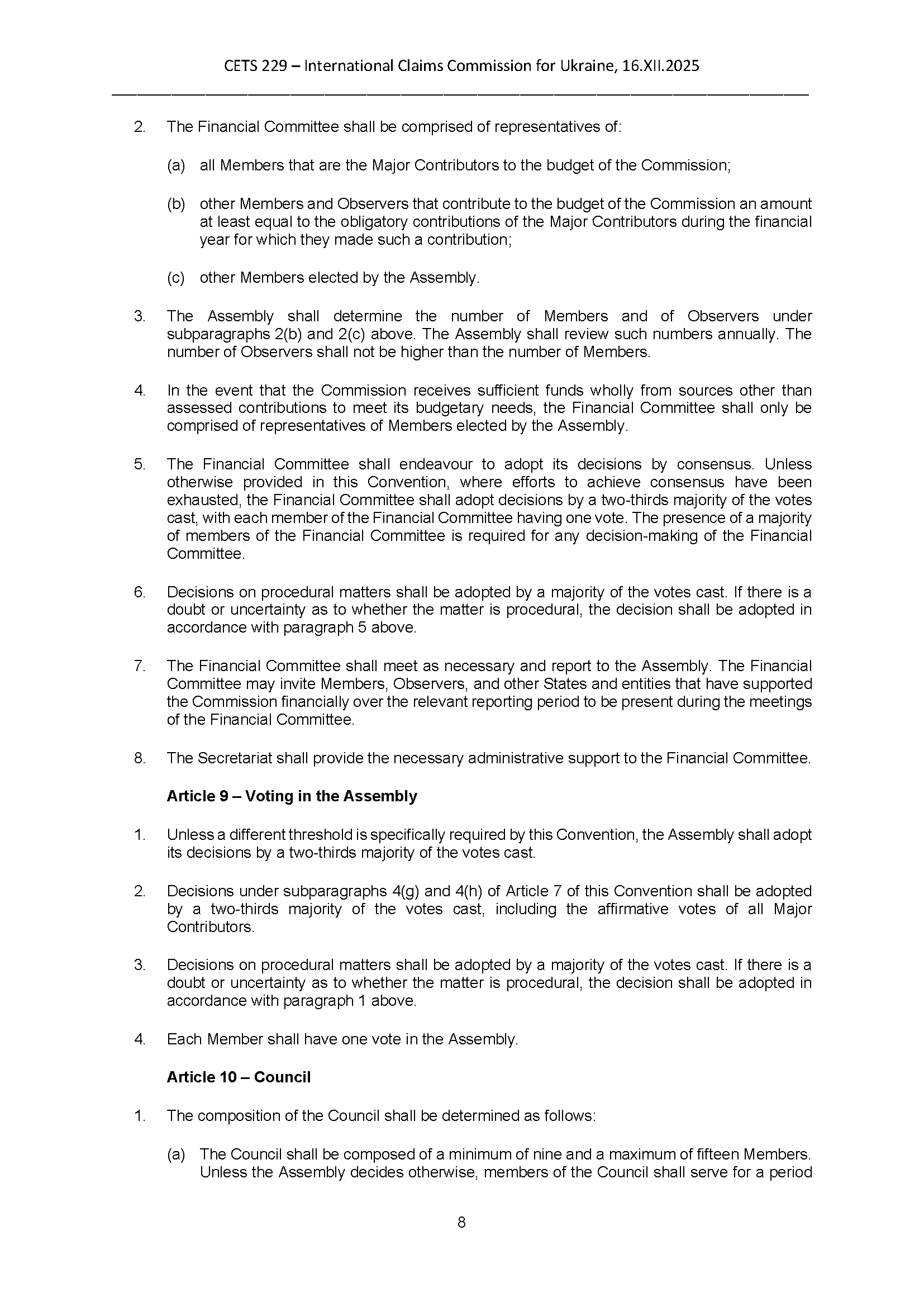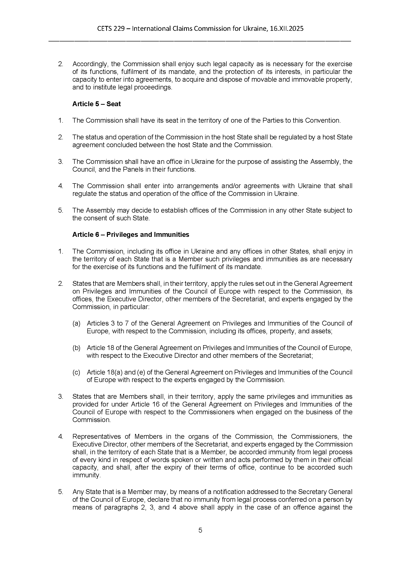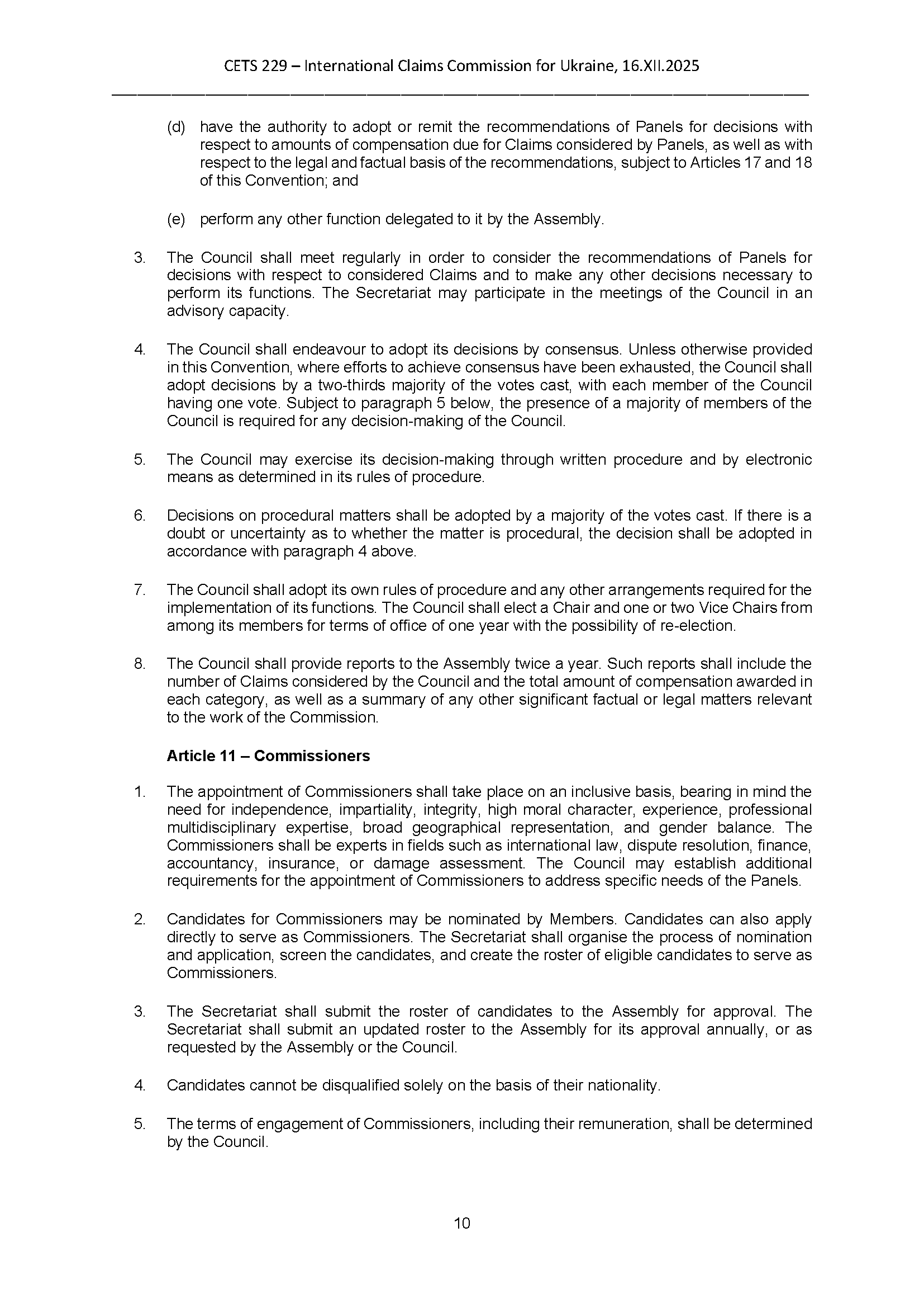 Ar šo Starptautiskā Prasību komisija Ukrainai tiek izveidota kā neatkarīga struktūra Eiropas Padomes iestāžu sistēmā.