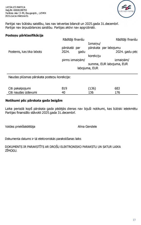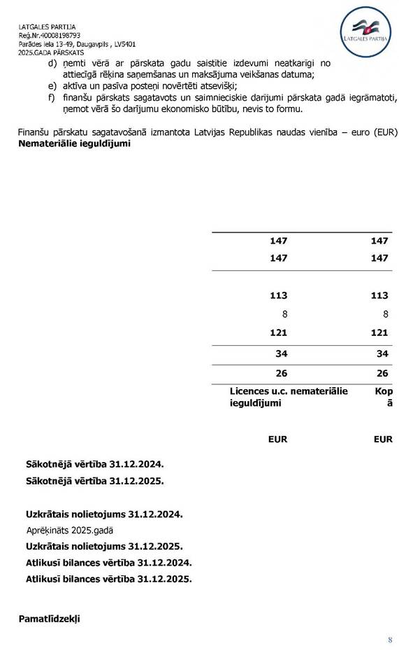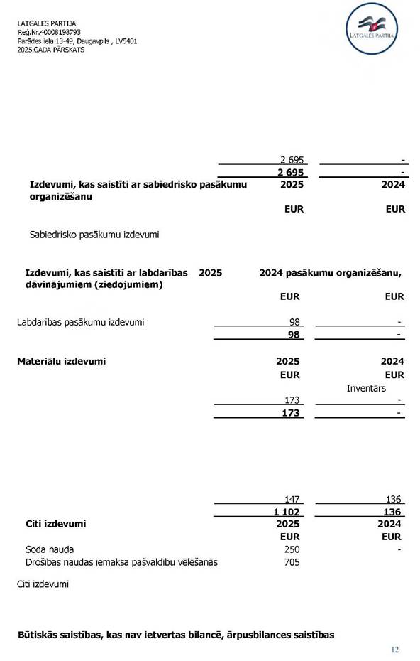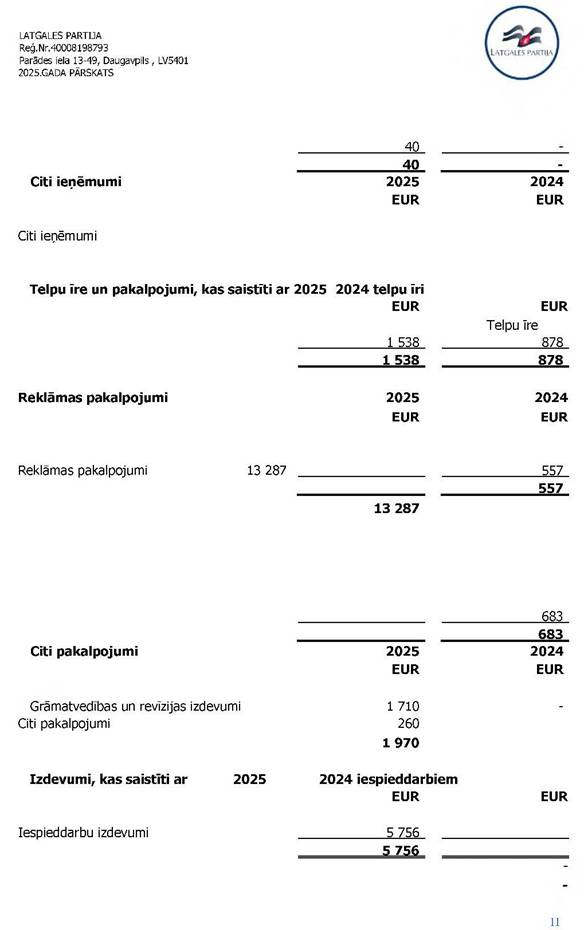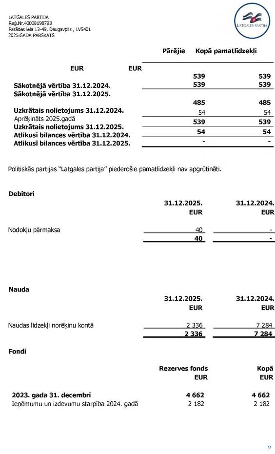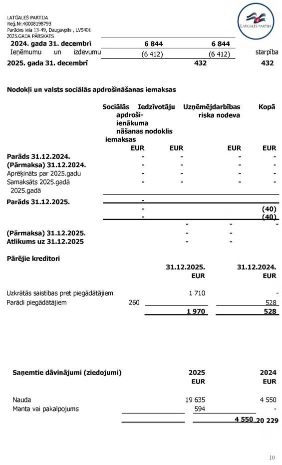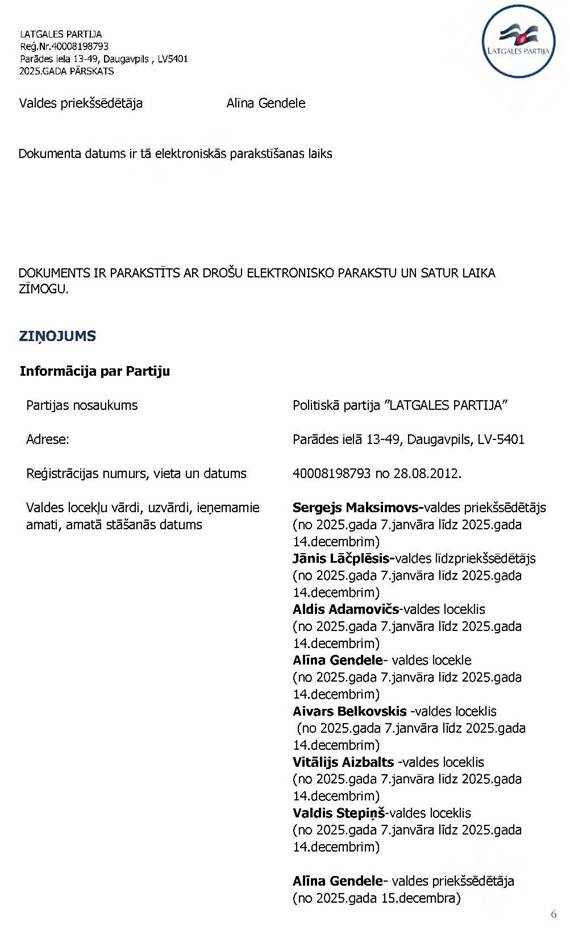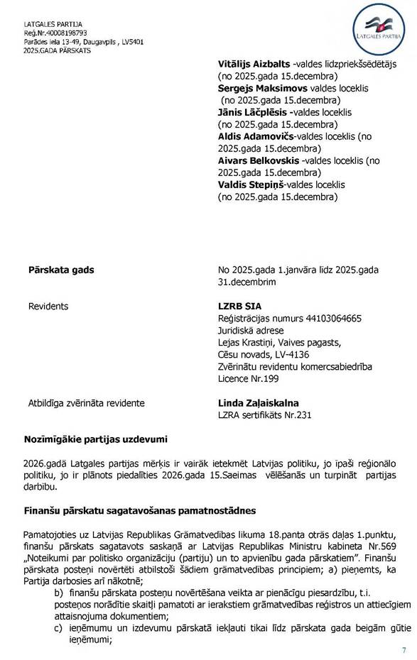 Politiskās partijas LATGALES PARTIJA, reģ. Nr. 40008198793, 2025. gada vadības ziņojums