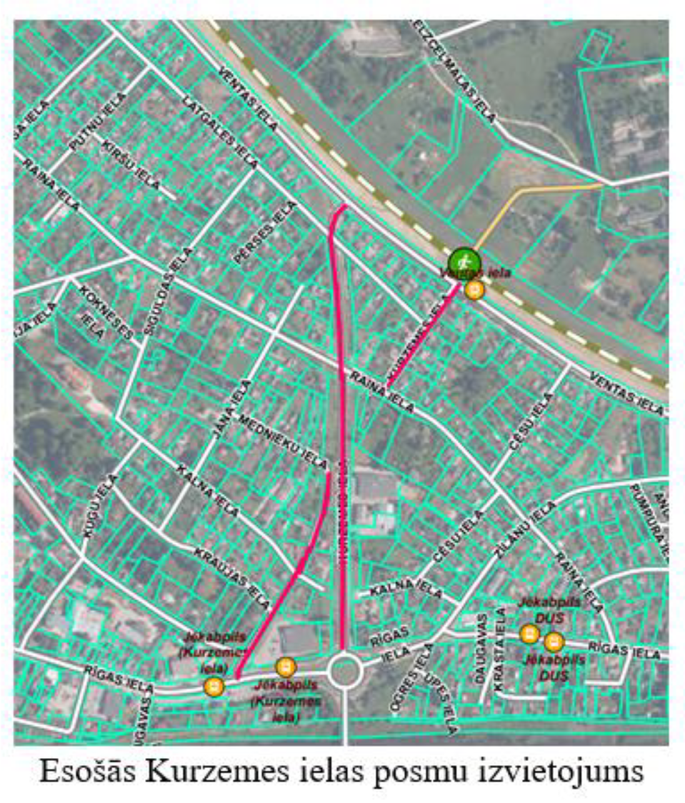 Kurzemes iela Jēkabpils izvietojuma shēma (56010017068, 56010013711, 56010017069