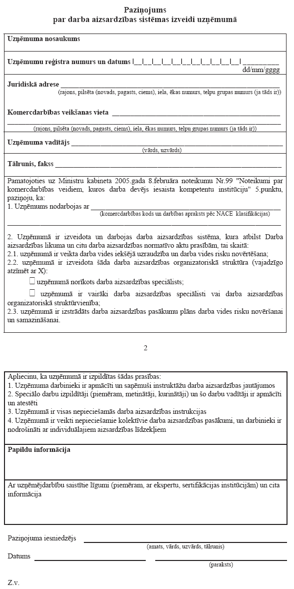6.1. paziņojumu par darba aizsardzības sistēmas izveidi uzņēmumā (2.pielikums);