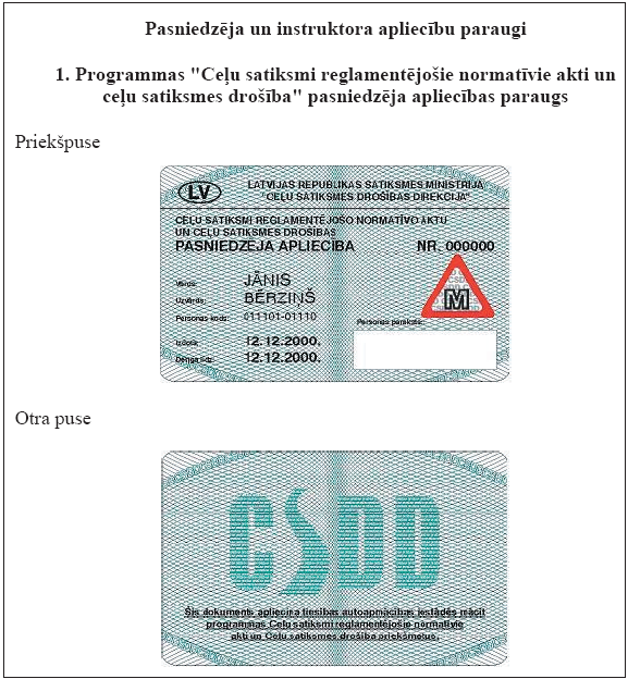 46.1. teorētisko eksāmenu, kas ietver jautājumus par programmu “Ceļu satiksmi reglamentējošie normatīvie akti un ceļu satiksmes drošība” un jautājumus praktiskajā pedagoģijā;
