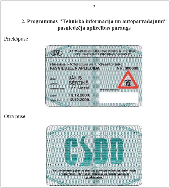 1. Ceļu satiksmes likums. Latvijas Administratīvo pārkāpumu kodekss. Ceļu satiksmes tiesiskais pamats. Transportlīdzekļu izmantošana ceļu satiksmē. Transportlīdzekļu reģistrācijas pamatnosacījumi. Transportlīdzekļu valsts tehniskā apskate. Ceļu satiksmes dalībnieki, to vispārīgie pienākumi un tiesības. Pilnvarojumi darbībām ar transportlīdzekļiem. Pārkāpumu uzskaites punktu sistēmas pamatprincipi. Vadītāja kvalifikācijas iegūšanas pamatnosacījumi, teorētiskā eksāmena un vadīšanas eksāmena pieņemšanas kārtība.