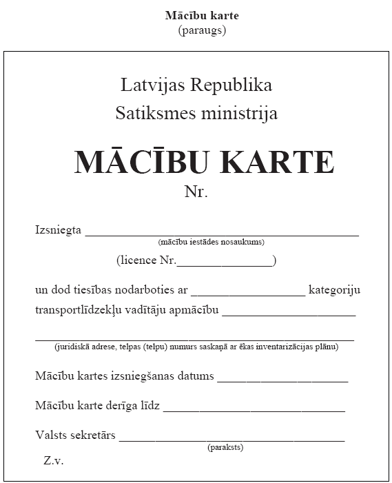 3.2. izglītības iestādei, kuras darbību reglamentējošā dokumentā (piemēram, nolikumā, statūtos) ir ietverta norāde par to, ka izglītības iestāde veic attiecīgo apmācību, un kura ir saņēmusi mācību karti.