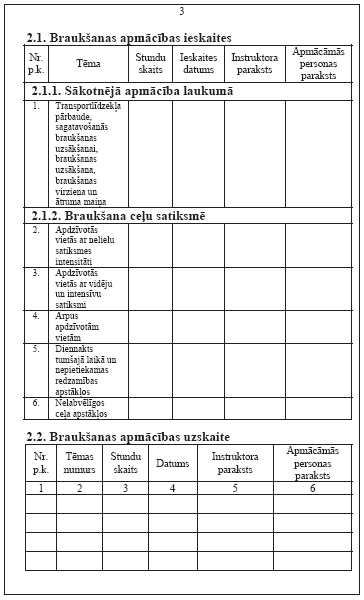 3. Priekšmeta “Transportlīdzekļa vadītāja atbildība par ceļu satiksmi reglamentējošo normatīvo aktu pārkāpumiem” programma