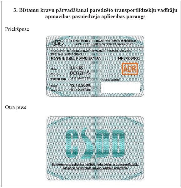 40.3. bīstamu kravu pārvadāšanai paredzēto transportlīdzekļu vadītāju apmācības pasniedzējam — programmas “Ceļu satiksmi reglamentējošie normatīvie akti un ceļu satiksmes drošība” pasniedzēja kvalifikācija un B un Ckategorijas transportlīdzekļu vadīšanas tiesības;