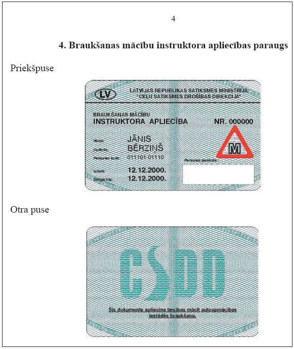 40.4. instruktoram — vismaz vidējā izglītība un B kategorijas transportlīdzekļu vadītāja stāžs vismaz trīs gadi.