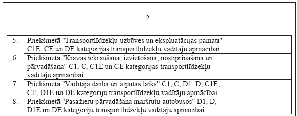 4. Priekšmeta “Pasažieru pārvadāšana maršrutu autobusos” programma