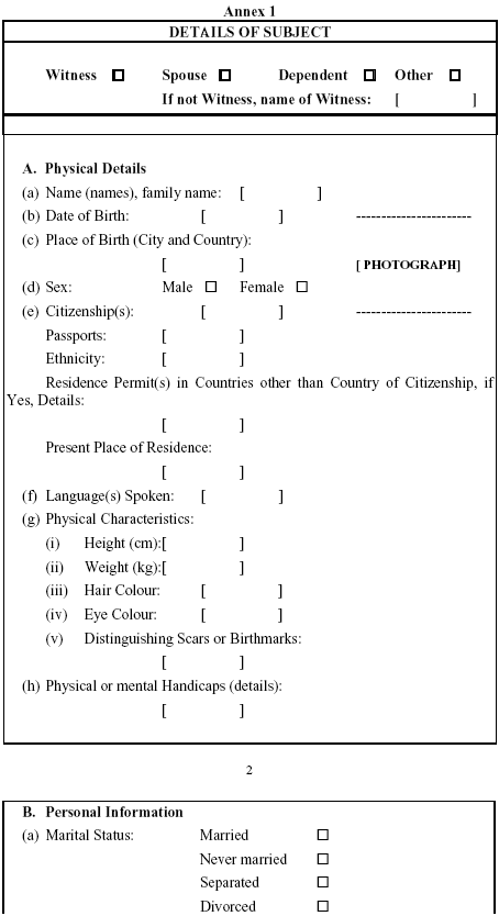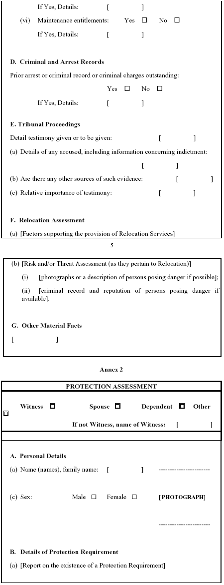 (10) When the Registrar considers that in addition to the Relocation Services provided herein protective measures are necessary to ensure the protection of Witnesses and, where necessary, their close relations (hereafter: "Protection Requirement"), the relevant Request shall be accompanied by a report on the Protection Requirement. This report shall be provided in the form of Annex 2 to this Exchange of Letters.