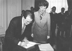 Romano Prodi parakstās Valsts prezidenta Goda viesu zelta grāmatā |