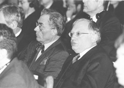 Uzrunas laikā: Eiropas Savienības vēstnieks Latvijā Ginters Veiss, komisārs ES paplašināšanās jautājumos Ginters Ferhoigens |