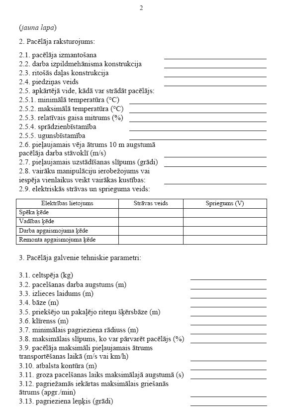 8.3. pacēlāja galvenie tehniskie raksturojumi;
