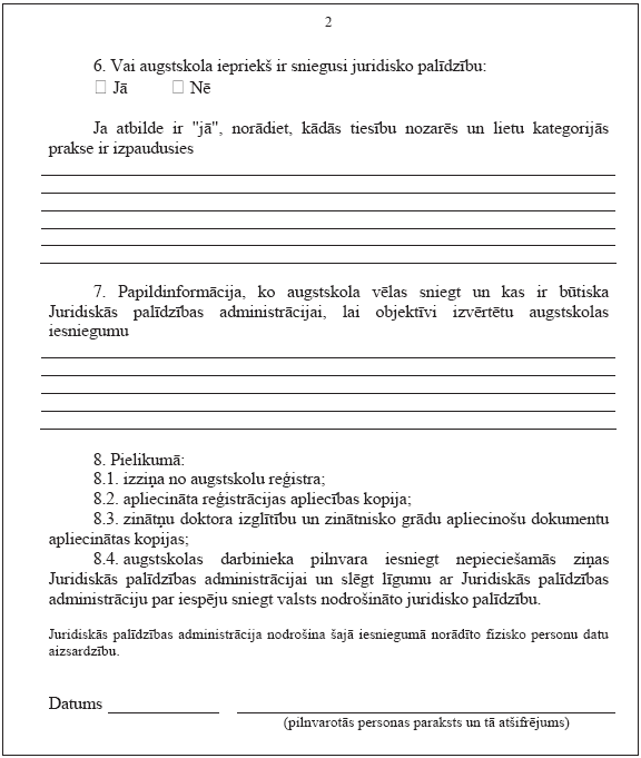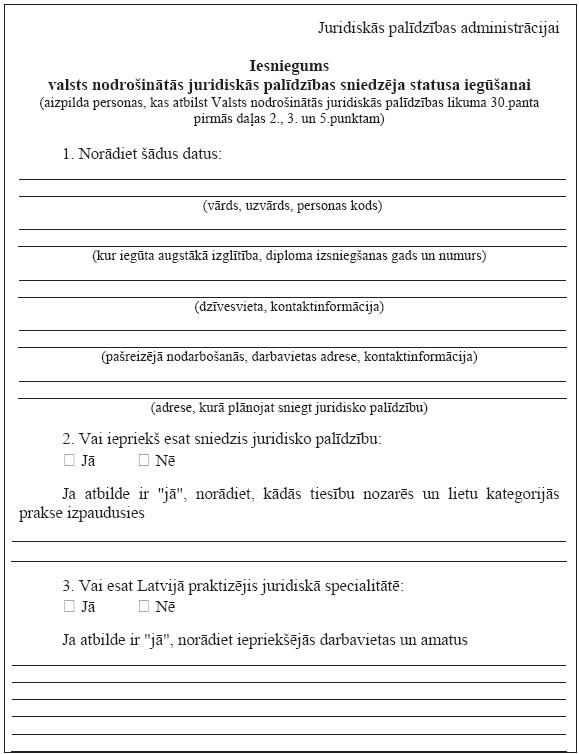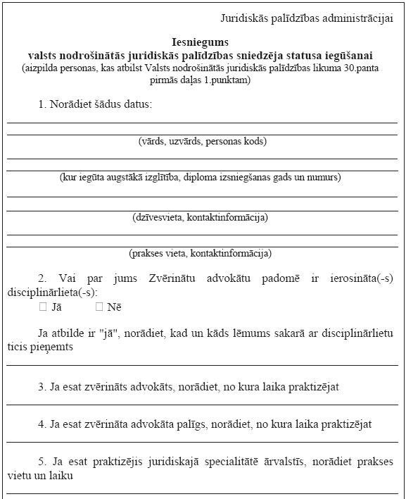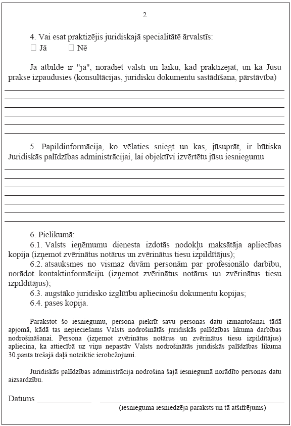 2.2. zvērinātiem notāriem, zvērinātiem tiesu izpildītājiem un rīcībspējīgām fiziskām personām, kuras atbilst visām Valsts nodrošinātās juridiskās palīdzības likuma 30.panta pirmās daļas 5.punktā noteiktajām prasībām (2.pielikums);