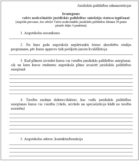 2.3. valsts atzītām augstskolām, kas ne mazāk kā piecus gadus nepārtraukti īsteno akreditētu studiju programmu, pēc kuras apguves tiek piešķirta jurista kvalifikācija un kurā juridiskās palīdzības sniegšanai izveidoto kursu vai vienību vada tiesību zinātņu doktors (3.pielikums).