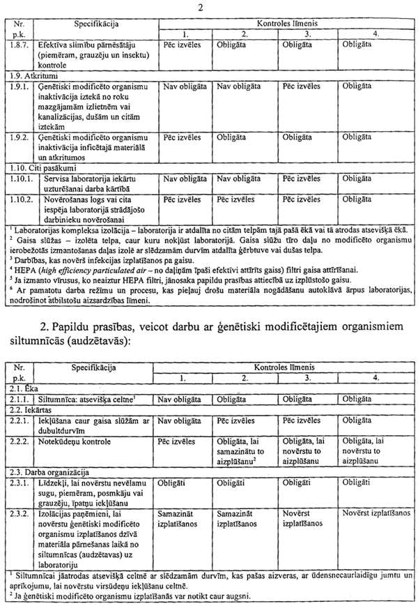 2.2. īpašas instrukcijas vai ieteikumi modificēto organismu uzglabāšanai un citām darbībām ar tiem;