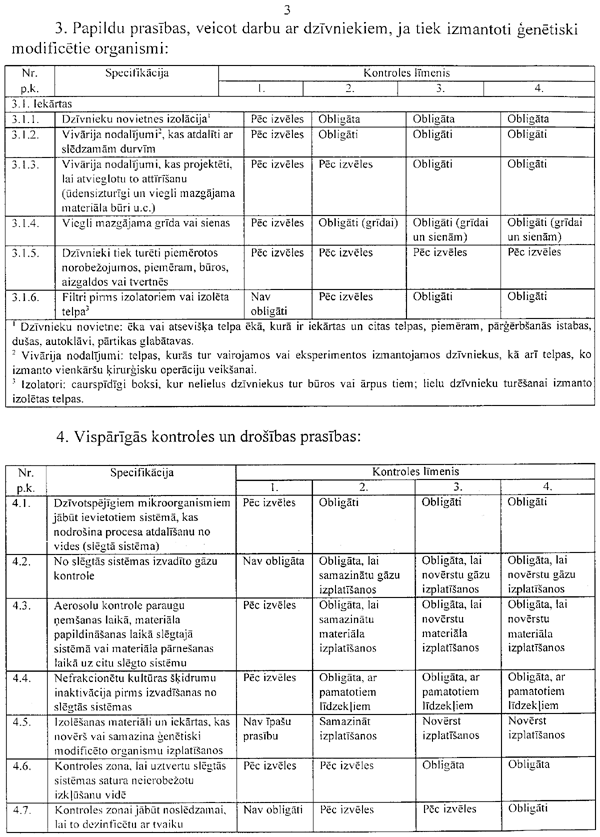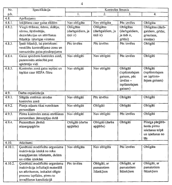 11. Nosakot risku atbilstoši šo noteikumu 9. un 10.punktā minētajām prasībām, rodas iespēja noteikt kontroles līmeni, kas piemērojams, veicot darbības ar konkrēto modificēto organismu. Kontroles un drošības pasākumus izvēlas, ievērojot riska pakāpi.