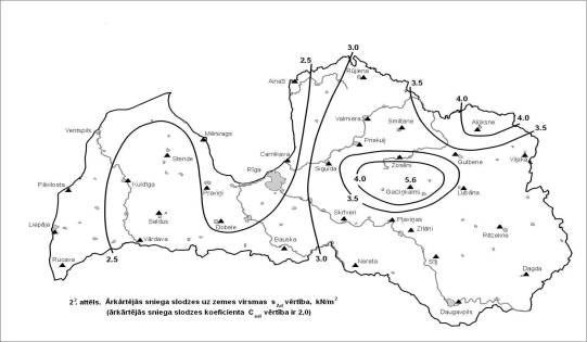 sniegam (standarta LVS EN 1991-1-3 "Eirokodekss 1 - Iedarbes uz