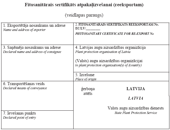83.21. fitosanitārajā sertifikātā ūdenszīmes veidā iestrādā dienesta logo un valsts nosaukumu "Latvija" angļu valodā;