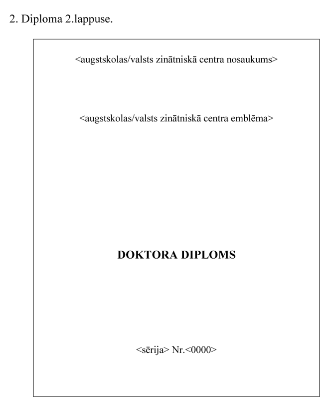 8.Šo noteikumu 2.punktā minētos diplomus izgatavo no balta, krītota kartona (250 g/m2). Diplomu lielums ir A5 formāta lapa (148 x 210 mm), un tiem ir četras lappuses.