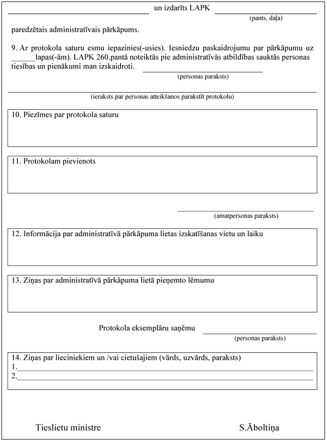 10. Administratīvā pārkāpuma protokola veidlapas aizpilda skaidri, salasāmi, bez dzēsumiem, svītrojumiem un neatrunātiem labojumiem.