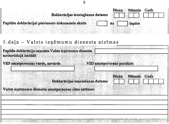 5. Maksātājs papildu deklarācijai var pievienot jebkuru citu informāciju par saviem ienākumiem, izdevumiem, to struktūru un īpatnībām, kuru tas uzskata par nepieciešamu sniegt Valsts ieņēmumu dienestam pirms ienākuma aprēķina veikšanas.