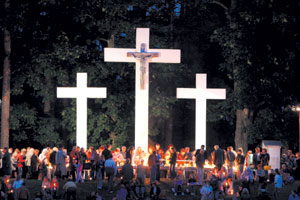 Lai vienotos kopīgā Krusta ceļa lūgšanā, uz Jaunavas Marijas debesīs uzņemšanas svētkiem arī šogad Aglonā ieradās desmitiem tūkstošu cilvēku no Latvijas, Lietuvas, Polijas un Baltkrievijas Foto: Toms Kalniņš, A.F.I. |