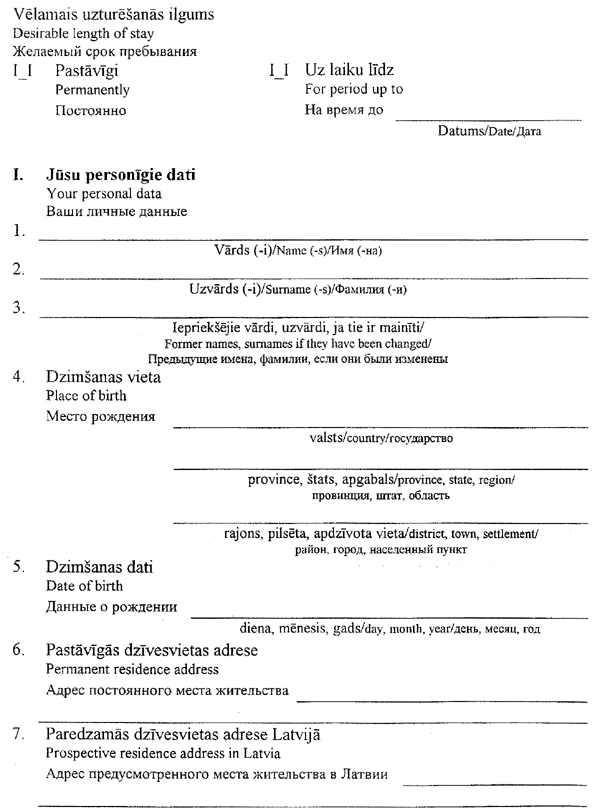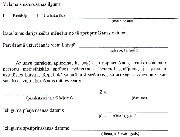 uzturēšanās atļaujas saņemšanai Latvijas Republikā