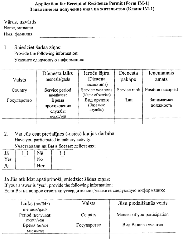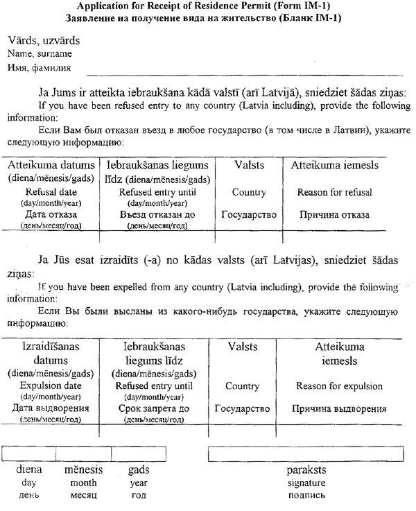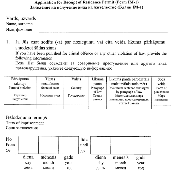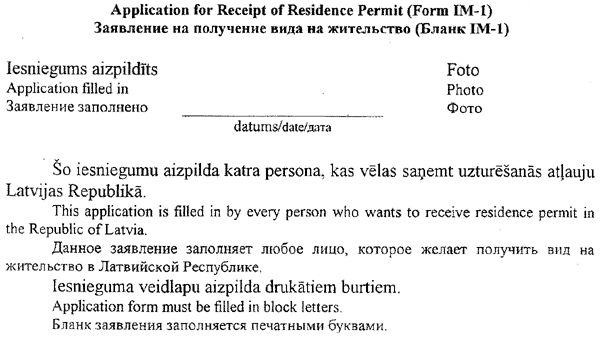 Iesniegums uzturēšanās atļaujas saņemšanai (veidlapa IM-1)