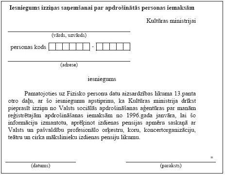 "2.6. personas iesniegumu (2.pielikums), kurā apliecināts, ka lēmuma pieņemšanai ministrija drīkst pieprasīt no aģentūras izziņu par apdrošinātās personas iemaksām."