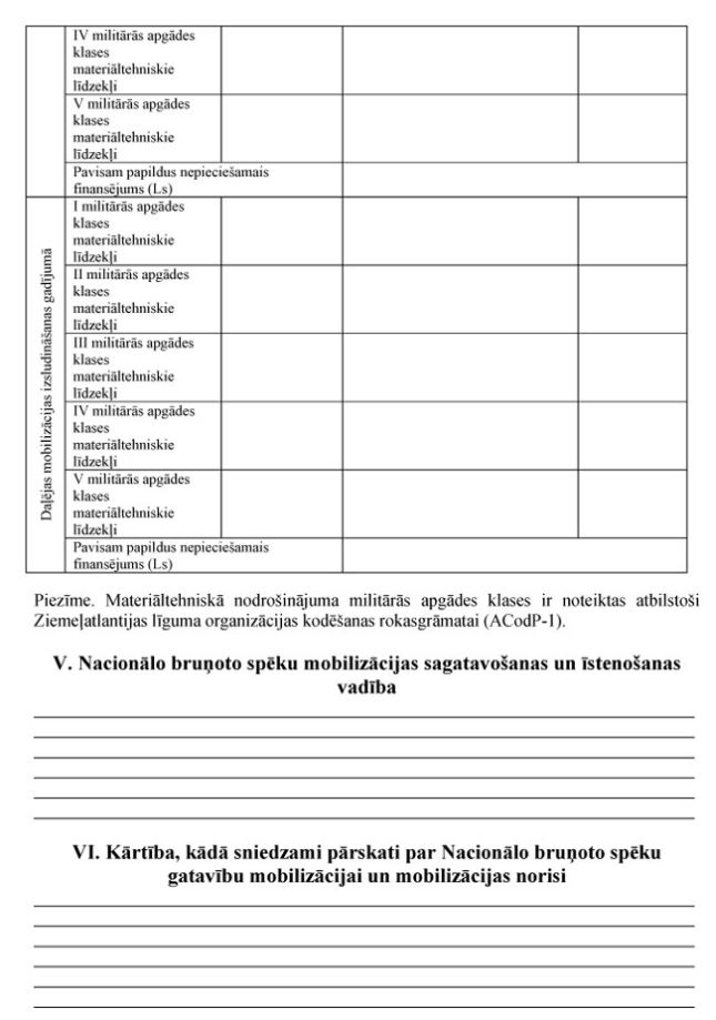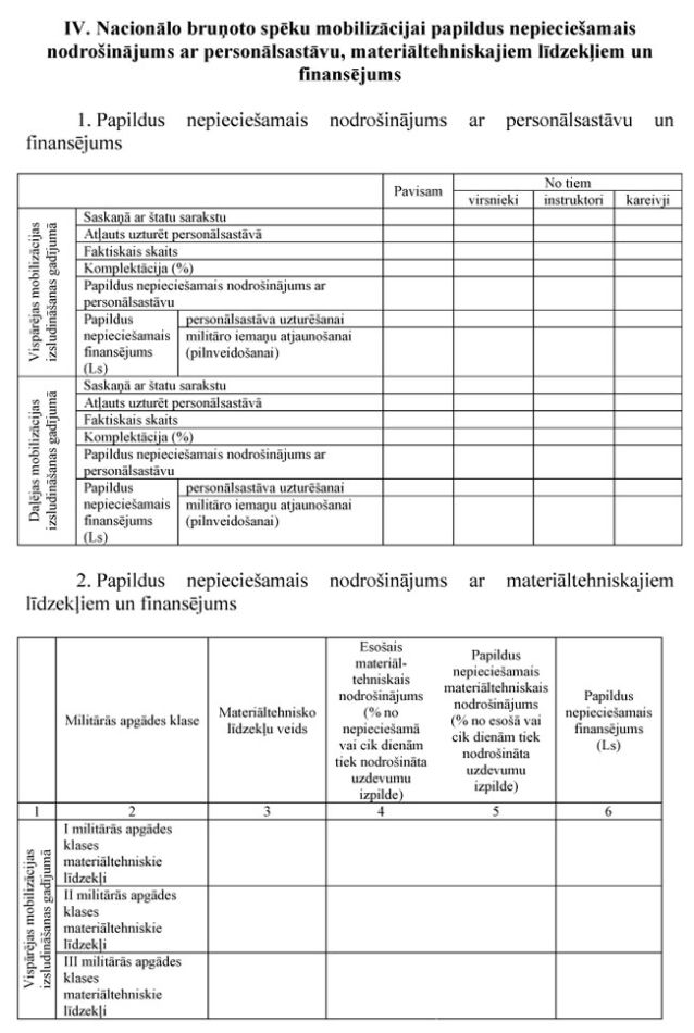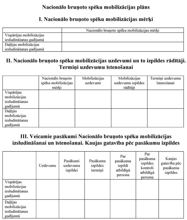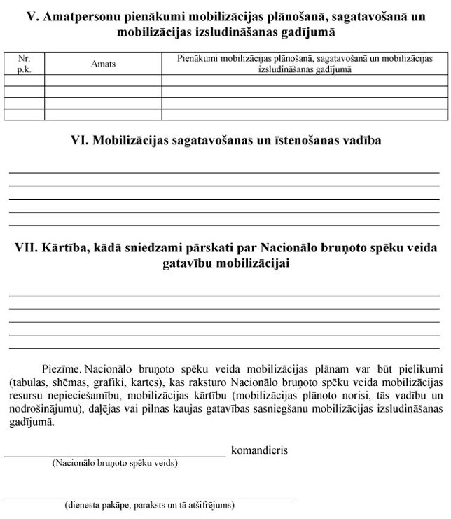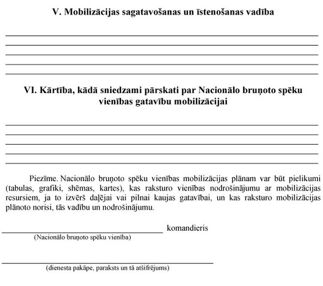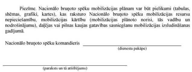 4.1. Nacionālo bruņoto spēku mobilizācijas plānu, Nacionālo bruņoto spēku veidu un vienību mobilizācijas plānus;