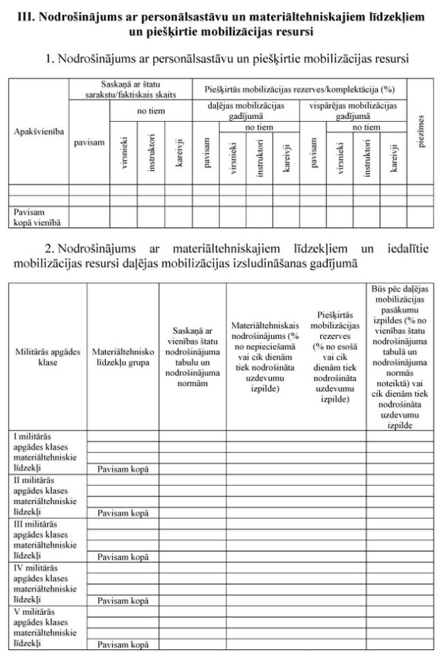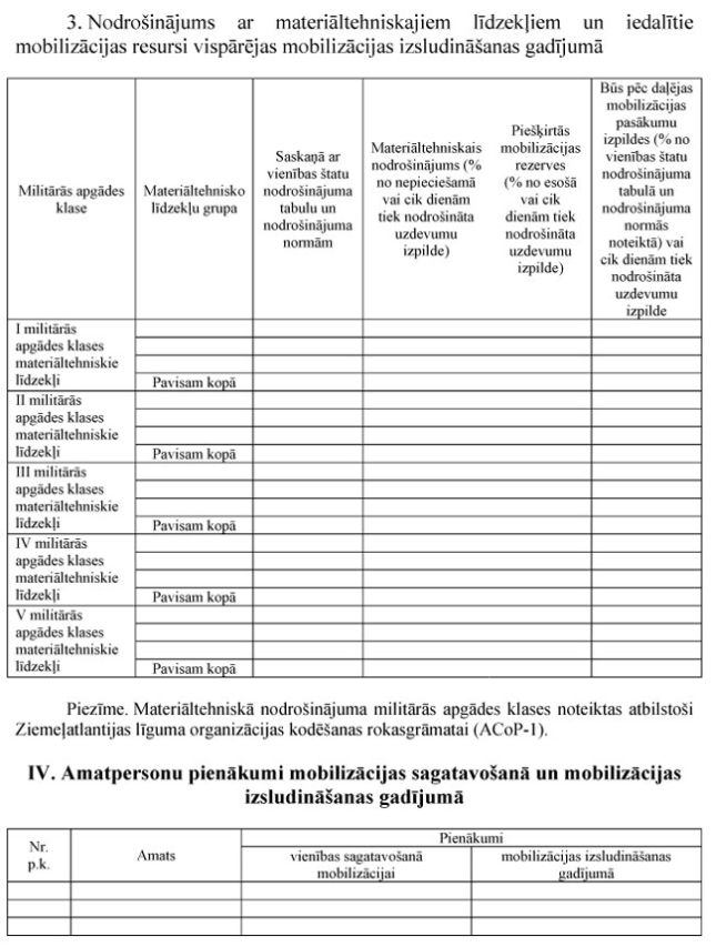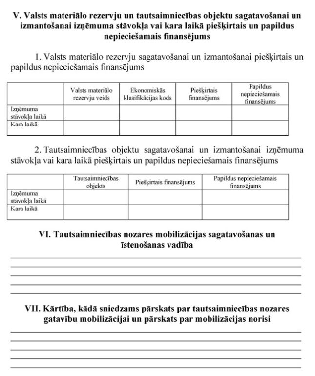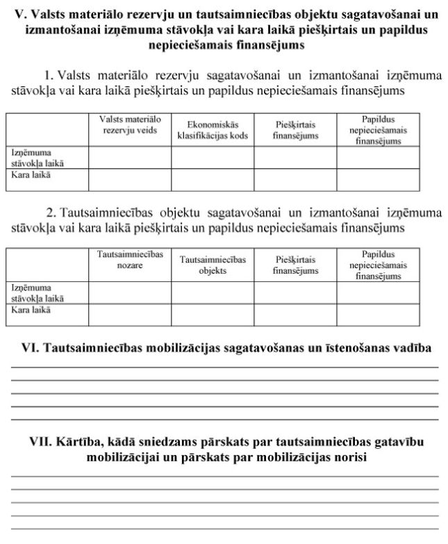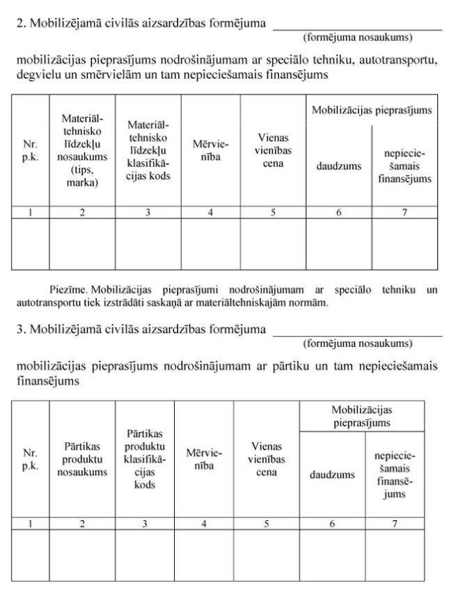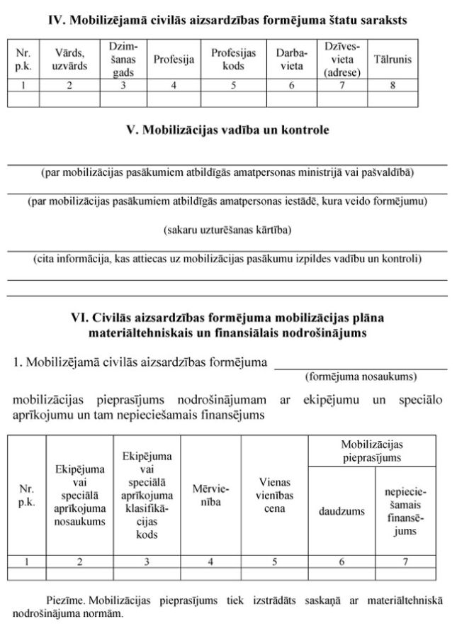 1.4. mobilizācijas plānu dokumentu veidlapu paraugus (1., 2., 3., 4., 5., 6. un 7.pielikums);