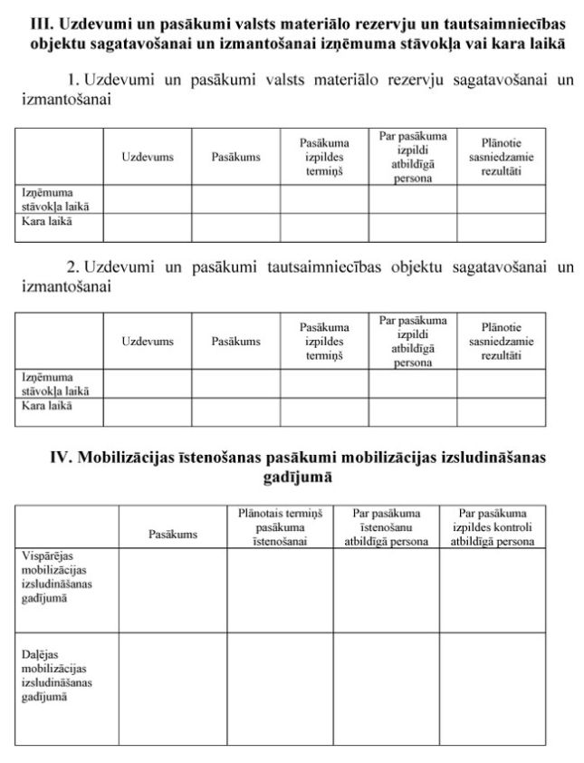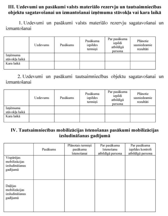 4.2. tautsaimniecības mobilizācijas plānu un tautsaimniecības nozaru mobilizācijas plānus;