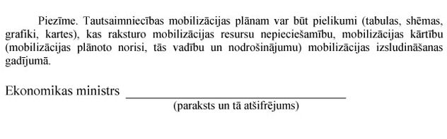 9.3. sadarbībā ar pārējām ministrijām un pašvaldībām izstrādā un iesniedz apstiprināšanai Ministru kabinetā tautsaimniecības mobilizācijas plānu;