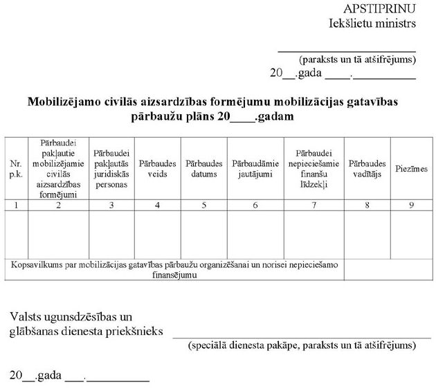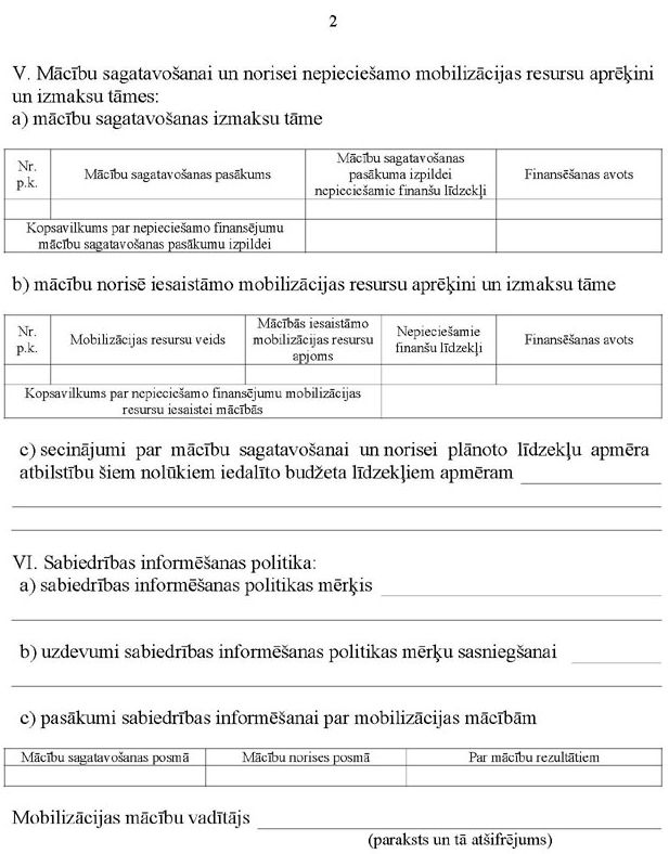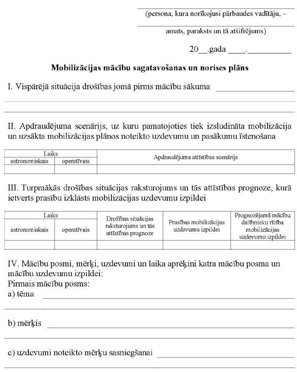 1.5. mobilizācijas gatavības pārbaužu un mobilizācijas mācību plānu dokumentus un veidlapu paraugus.