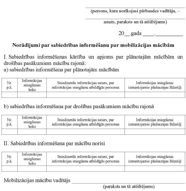 31.1. sabiedrības informēšanas kārtību par plānotajām mācībām un drošības pasākumiem mācību rajonā un sniedzamās informācijas apjomu;