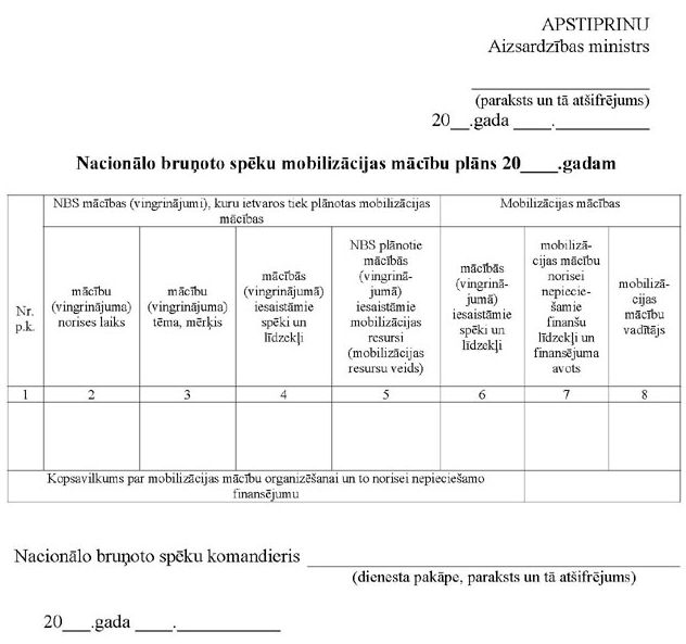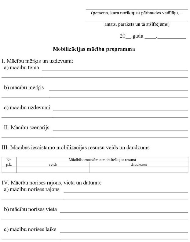 28.1. mobilizācijas mācību programma (9.pielikums);