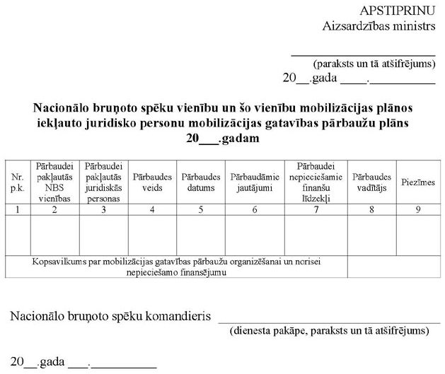 11.1. Aizsardzības ministrija — par Nacionālo bruņoto spēku mobilizācijas mācībām un mobilizācijas gatavības pārbaudēm;