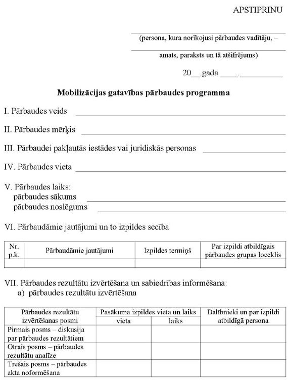 17.1. mobilizācijas gatavības pārbaudes programma (7.pielikums);