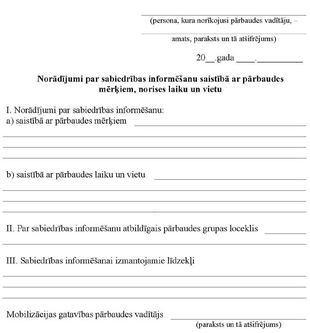 17.2. norādījumi par sabiedrības informēšanu saistībā ar pārbaudes mērķiem, norises laiku un vietu (8.pielikums).