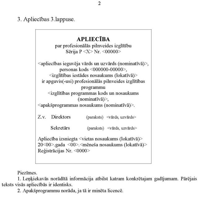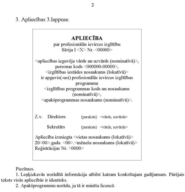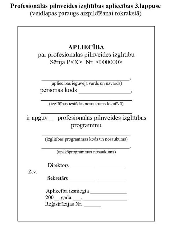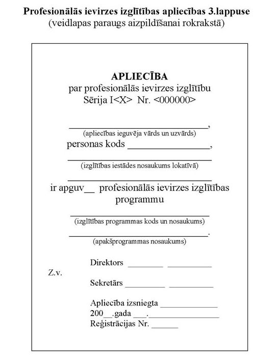 5.5. izgatavo arī apliecību veidlapas, kuru 3.lappusi pieļaujams aizpildīt rokrakstā (5. un 6.pielikums);