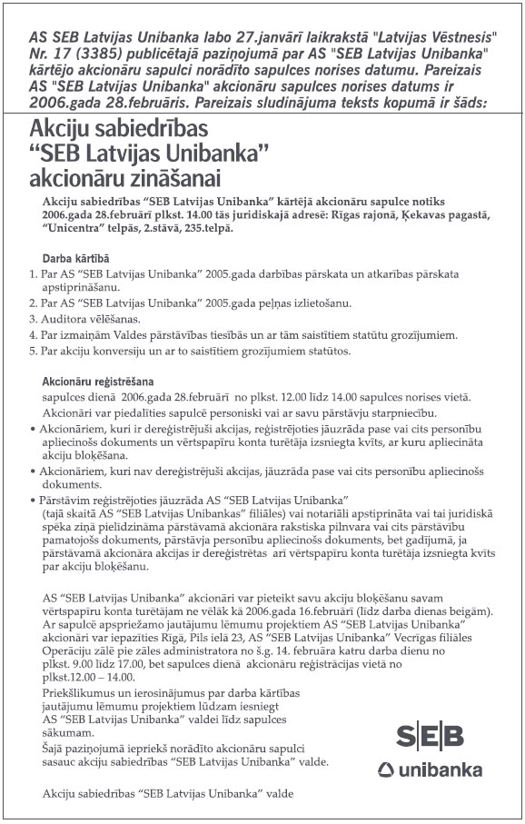 Paziņojumi akcionāriem, dalībniekiem, biedriem