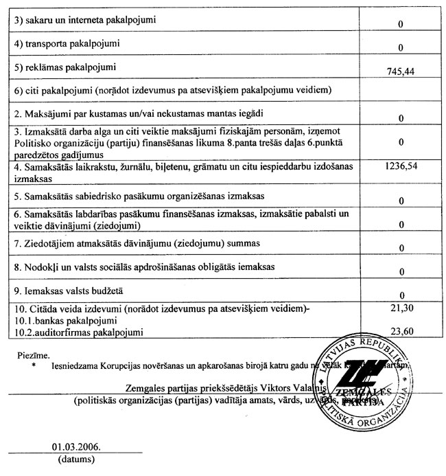 Par politisko organizāciju iesniegtajām ikgadējām finansiālās darbības deklarācijām par 2005.gadu