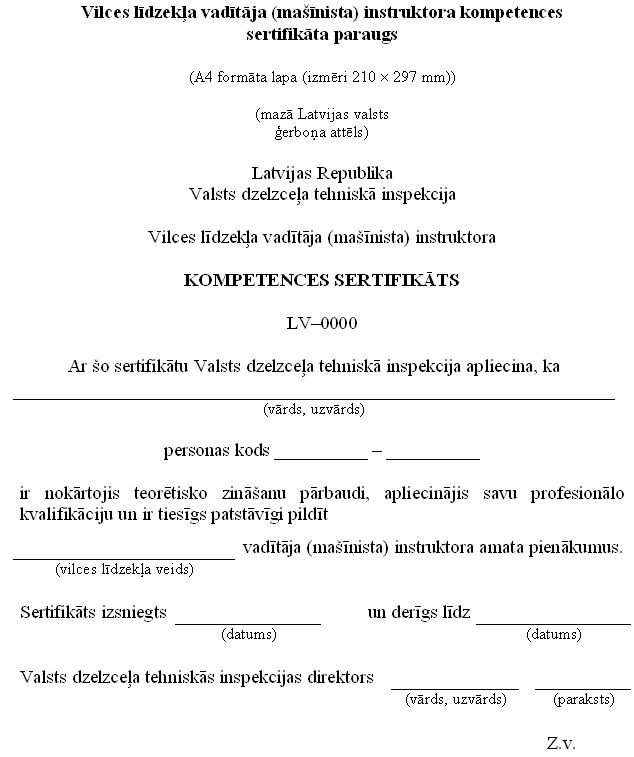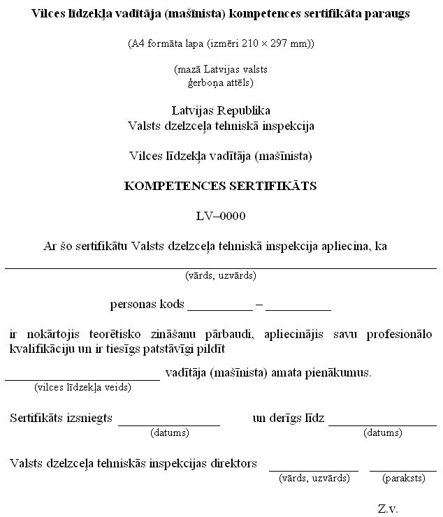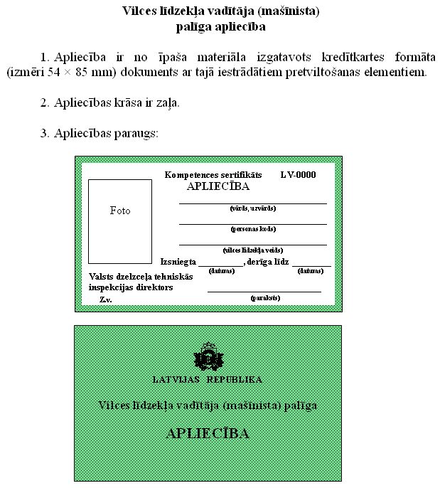 Noteikumi par vilces līdzekļa vadītāja (mašīnista) instruktora, vilces līdzekļa vadītāja (mašīnista), vilces līdzekļa vadītāja (mašīnista) palīga kvalifikācijas prasībām un sertifikācijas kārtību