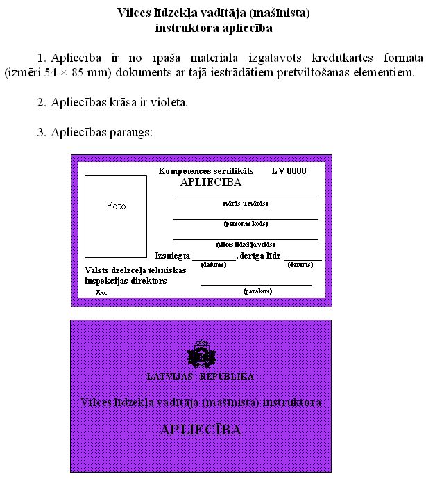 23. Mašīnistam instruktoram izsniedz mašīnista instruktora sertifikātu un apliecību noteikta veida vilces līdzekļa vadīšanai: